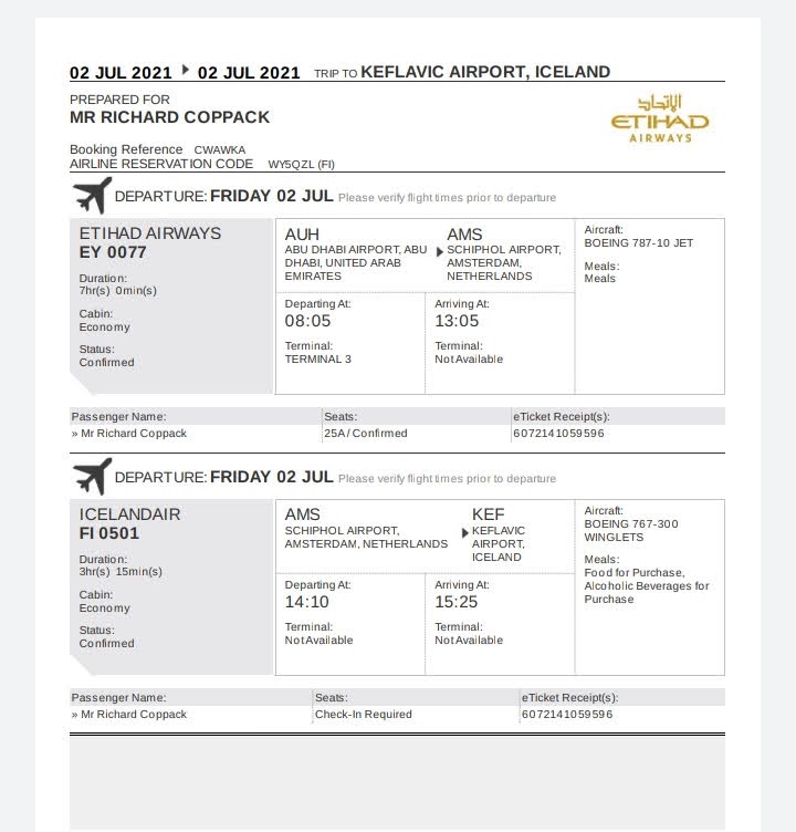 This is a plane ticket to Reykjavik, for Iceland is on the UK green list. It is also accepting visitors from anywhere in the world who can present a certificate of vaccination which, faithful reader, as you know from previous missives, I am proud to possess. A 10 day holiday in this wonderfully unlikely destination will therefore permit me entry to the UK, my friends, family and the summer that I desperately need.